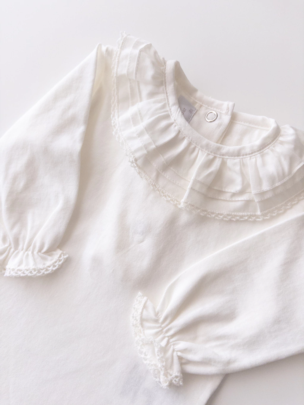 Em tecido 100% algodão, com bordado na gola e punhos.