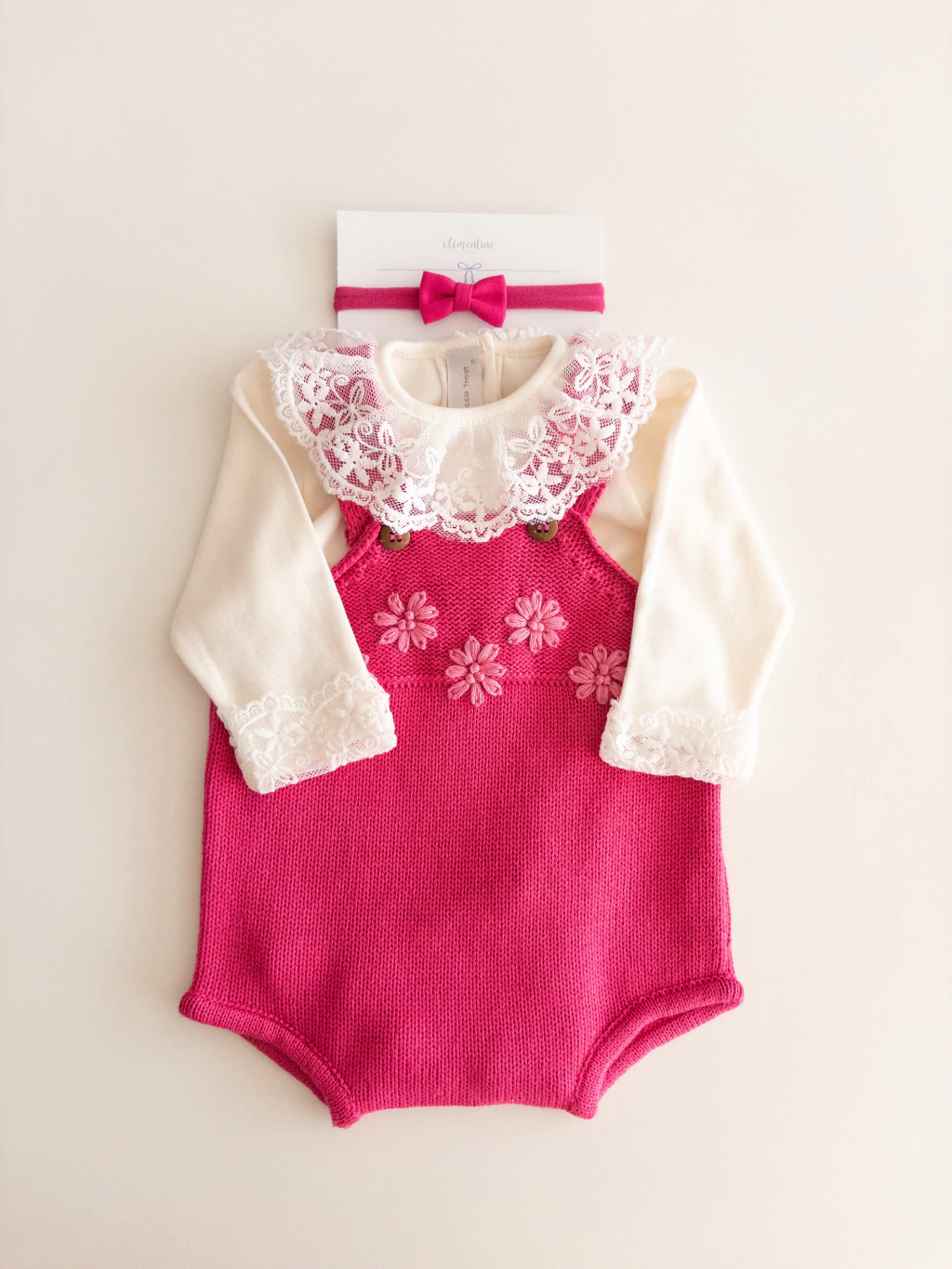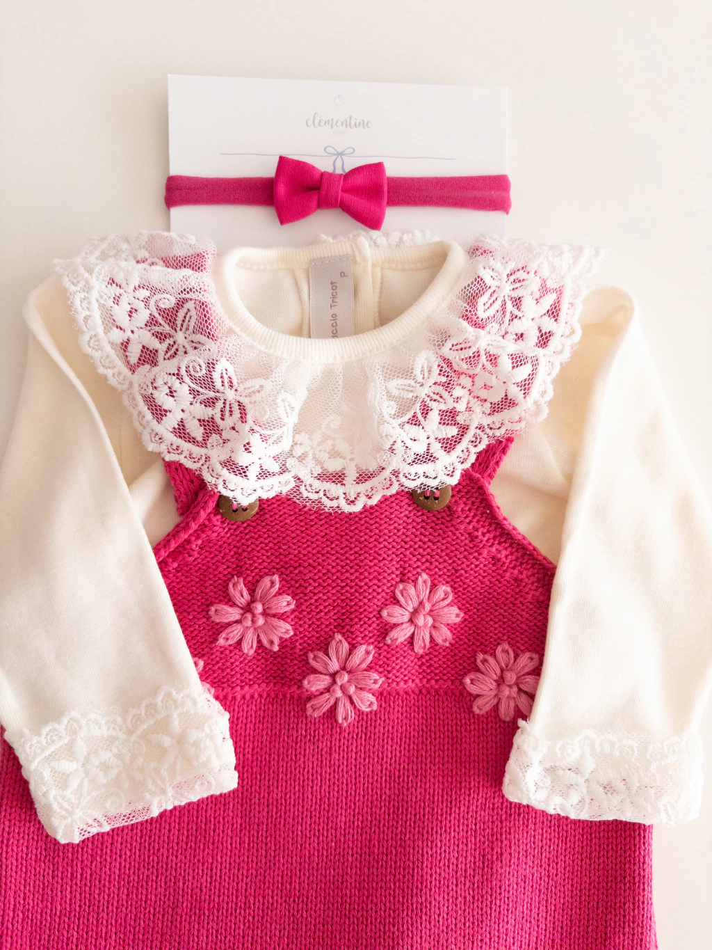 Encante-se com a elegância e a delicadeza desta linda jardineira Terra, perfeita para ocasiões especiais ou para adicionar um toque de sofisticação ao dia a dia. Feita em tricô suave e respirável, garante conforto total para a sua pequena. O design inclui delicadas flores adornando a parte frontal juntamente com um laço, proporcionando um charme extra. Ajuste confortável nos ombros e fechamento prático com botões garantem facilidade na hora de vestir e trocar. Essa jardineira é a escolha ideal para quem busca estilo e conforto em cada detalhe. O toque final ficou para o body bordado de cerejas. Perfeito!