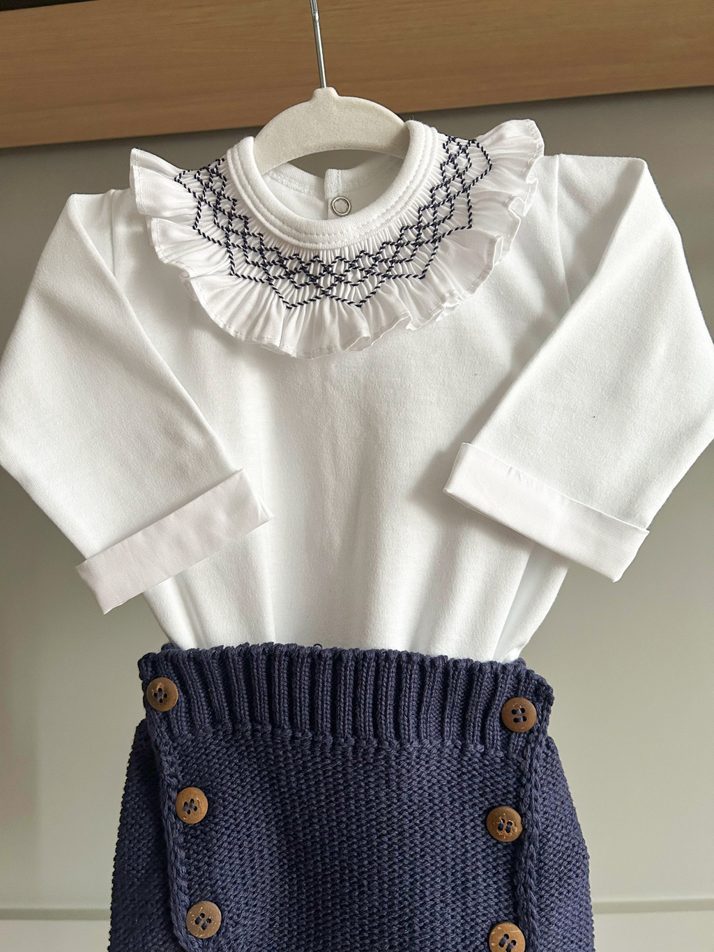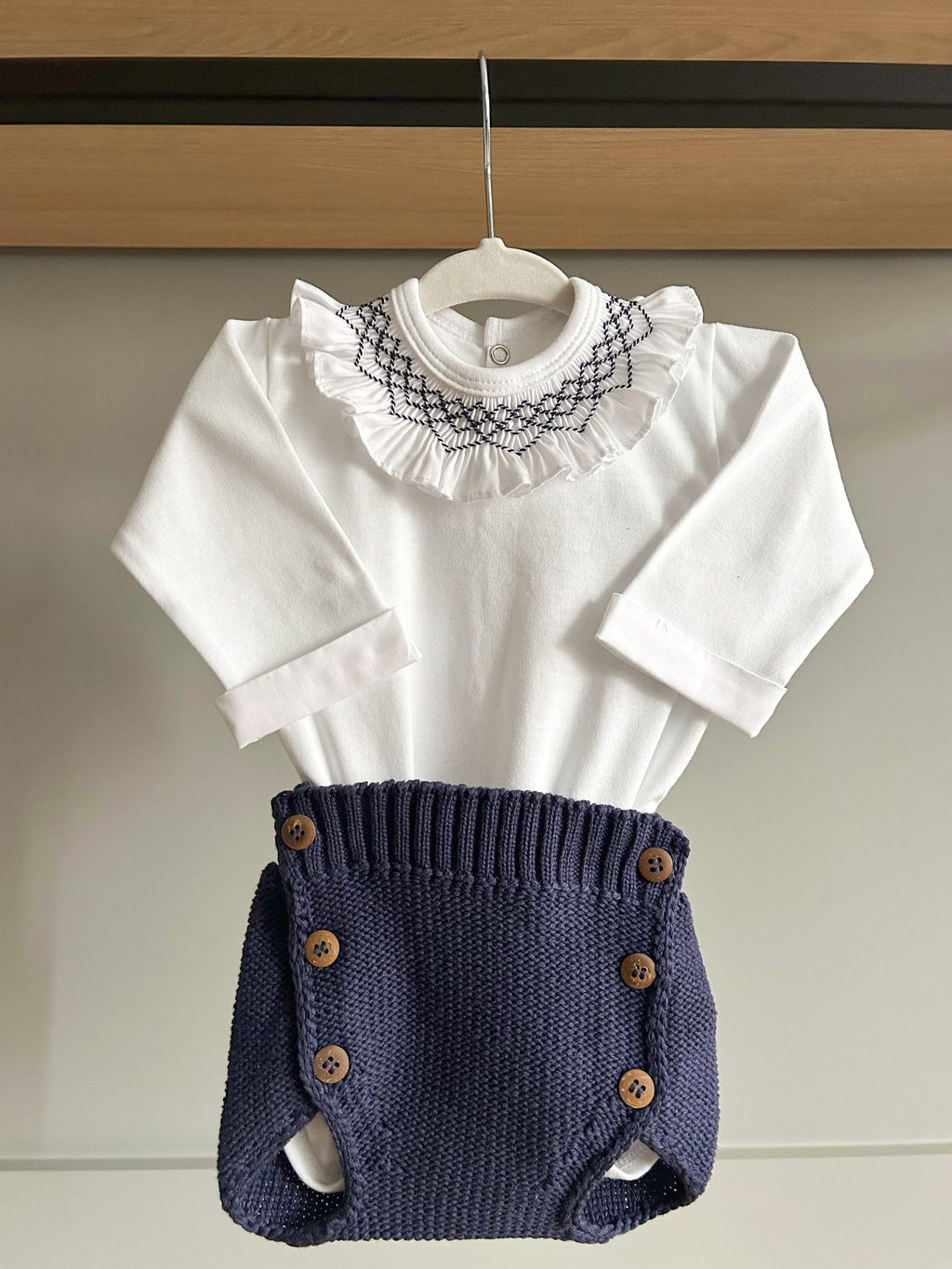 Este bloomer/tapa fralda apresenta charmosos batões de madeira, adicionando um toque de charme e personalidade para a peça. Combinando com body de casinha de abelha em tons de amarelo, é o look perfeito cheio de estilo e delicadeza. Para ocasiões especiais ou simplesmente para adicionar um toque encantador no dia da sua princesa.