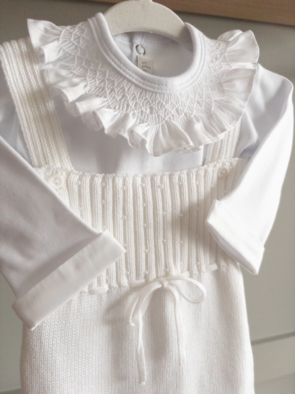 Encante-se com a elegância e a delicadeza desta linda jardineira Terra, perfeita para ocasiões especiais ou para adicionar um toque de sofisticação ao dia a dia. Feita em tricô suave e respirável, garante conforto total para a sua pequena. O design inclui delicadas pérolas adornando a parte frontal juntamente com um laço, proporcionando um charme extra. Ajuste confortável nos ombros e fechamento prático com botões garantem facilidade na hora de vestir e trocar. Essa jardineira é a escolha ideal para quem busca estilo e conforto em cada detalhe. O toque final ficou para o body bordado de casinha de abelha. Perfeito!
