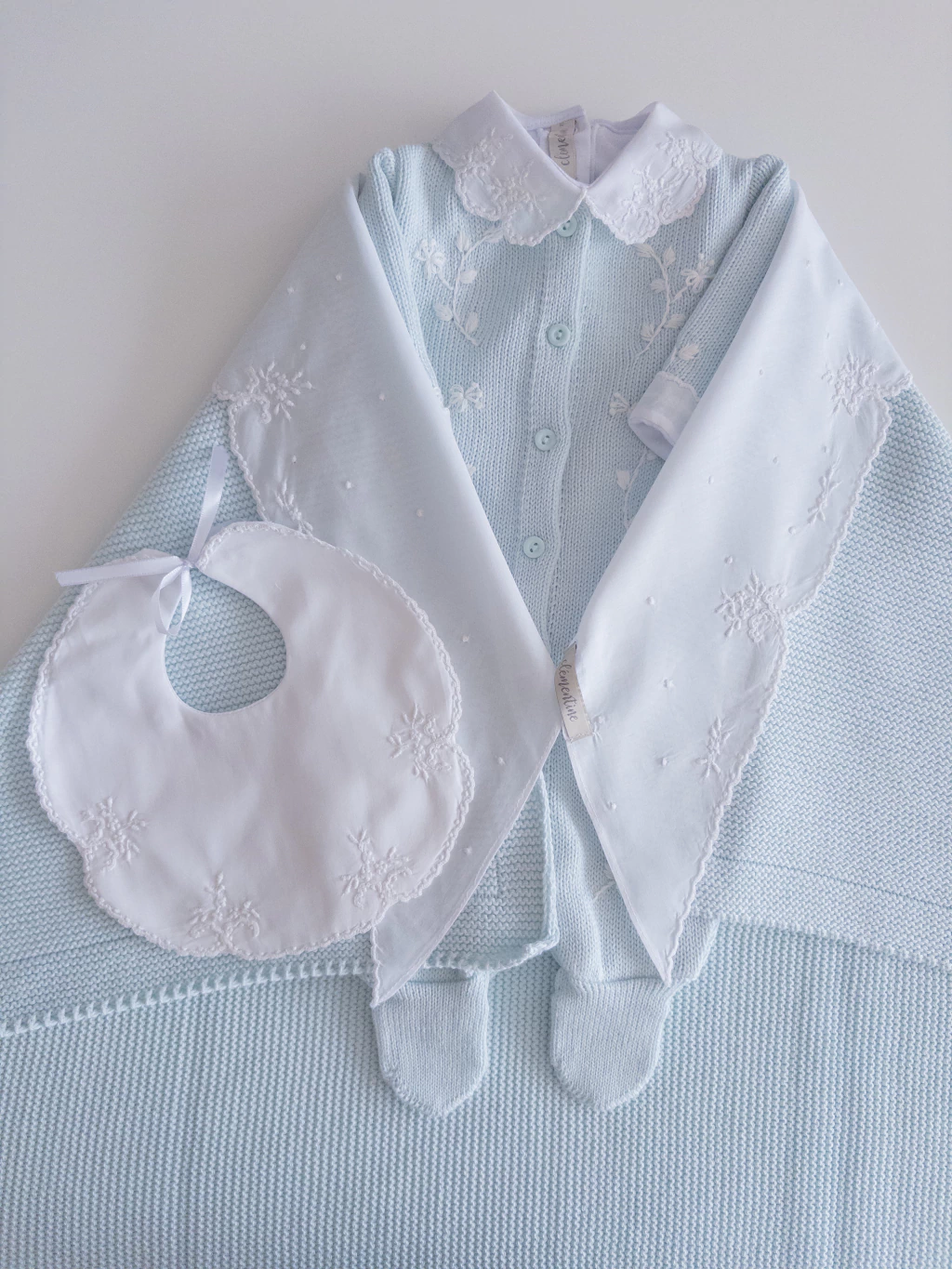 Composição macacão e manta 50% algodão e 50% acrílico.