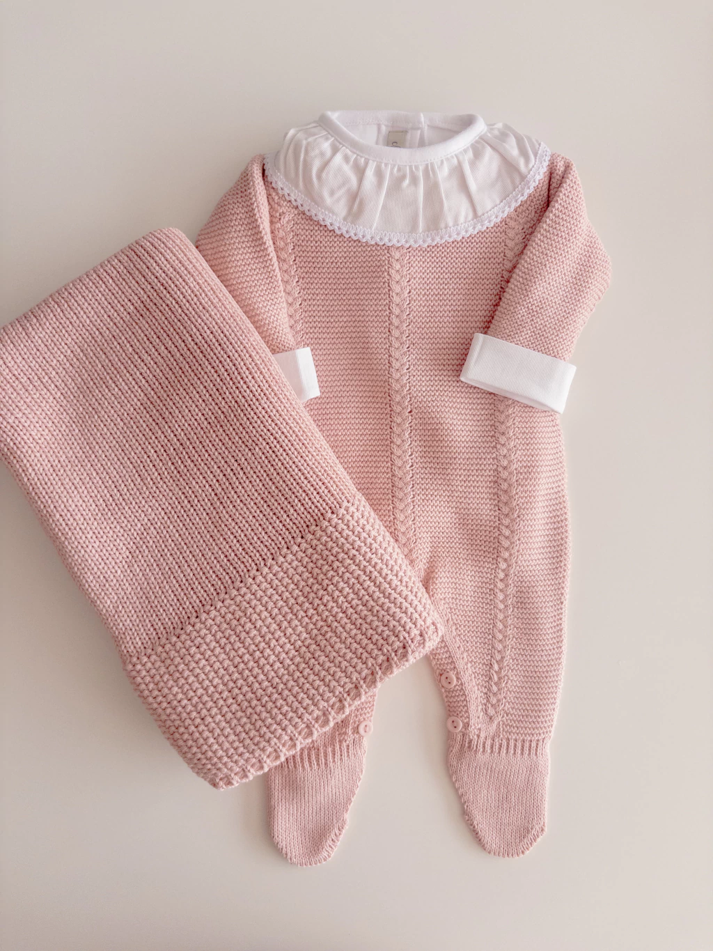 Composição macacão e manta: 50% algodão e 50% acrílico.