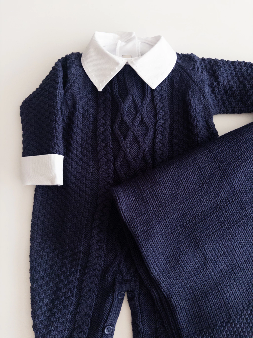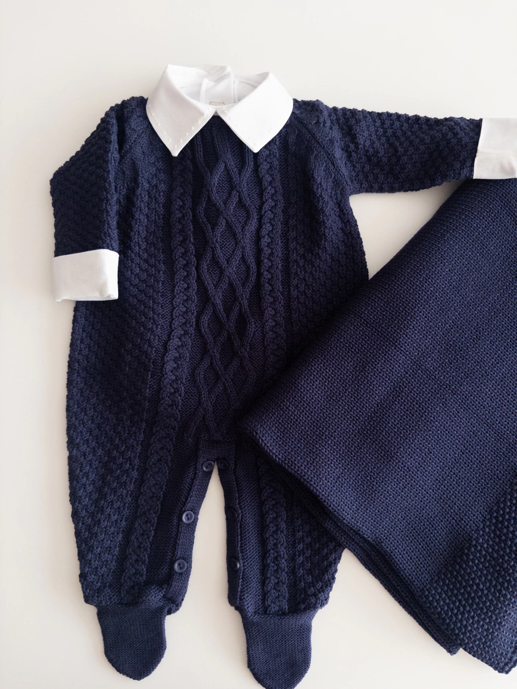 Composição macacão e manta: 50% algodão e 50% acrílico.