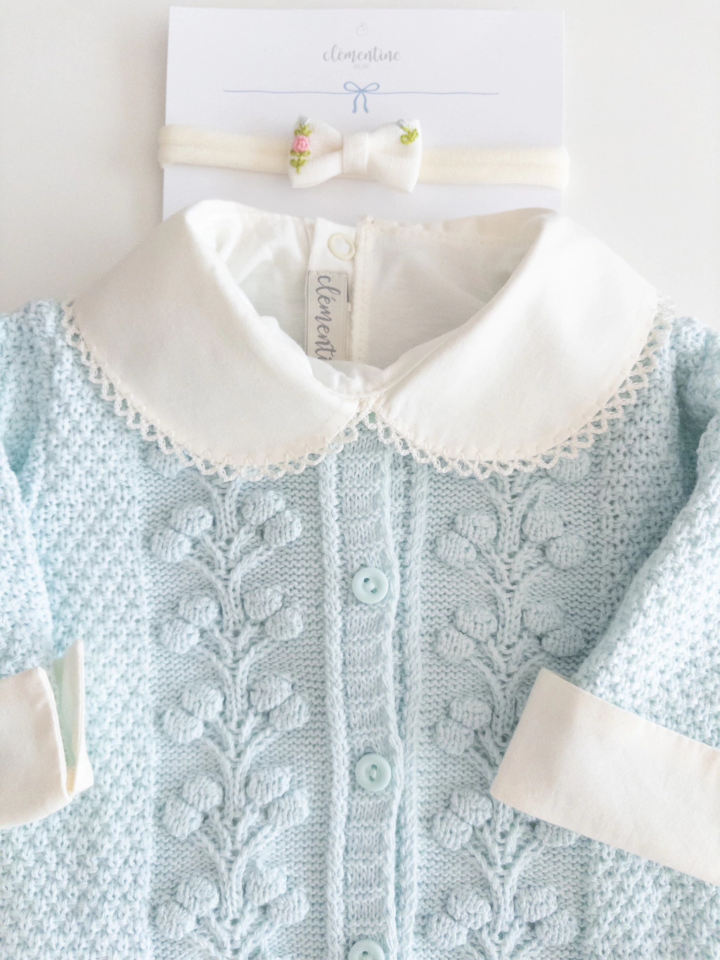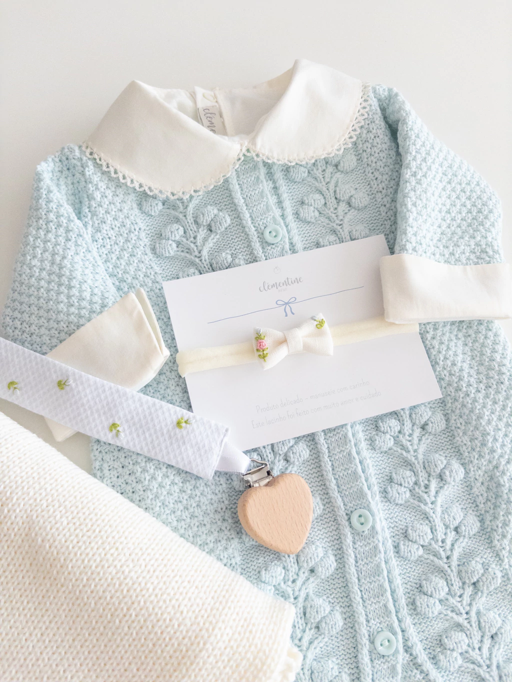 Macacão em tricô, delicadamente bordado com bolinhas para um toque de doçura. Feito com carinho e atenção aos detalhes, este macacão é uma mistura perfeita de conforto e estilo. Seu bebê ficará confortável e charmoso em qualquer ocasião, enquanto os suaves pontos de tricô abraçam sua pele com suavidade. Uma peça encantadora para adicionar à coleção de roupas do seu bebê, que certamente irá encantar a todos com sua beleza atemporal.