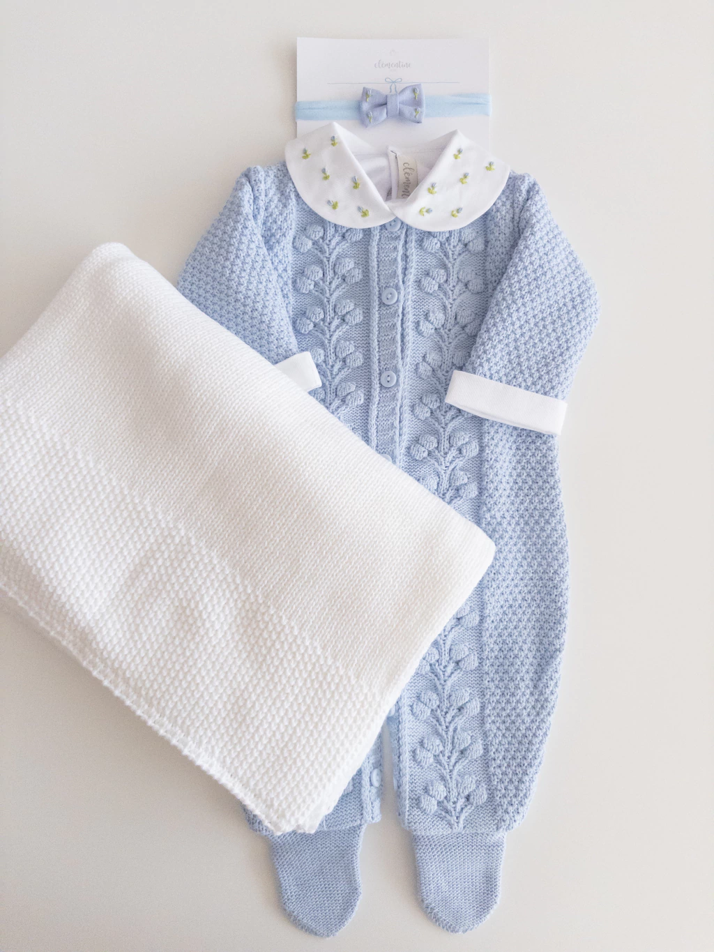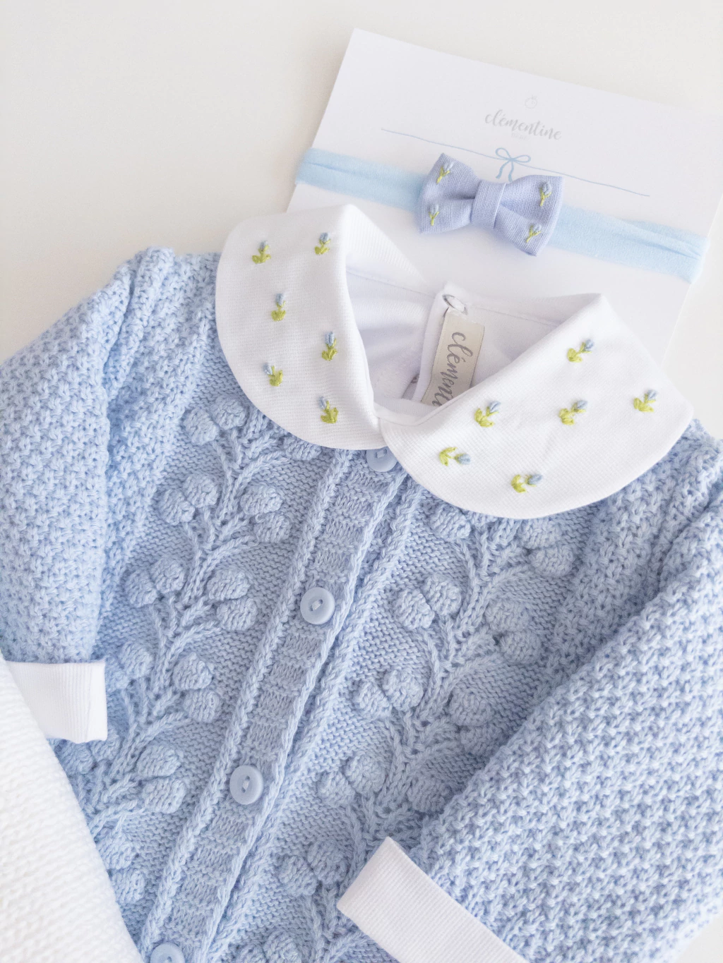 1 laço Cora bordado azul claro;