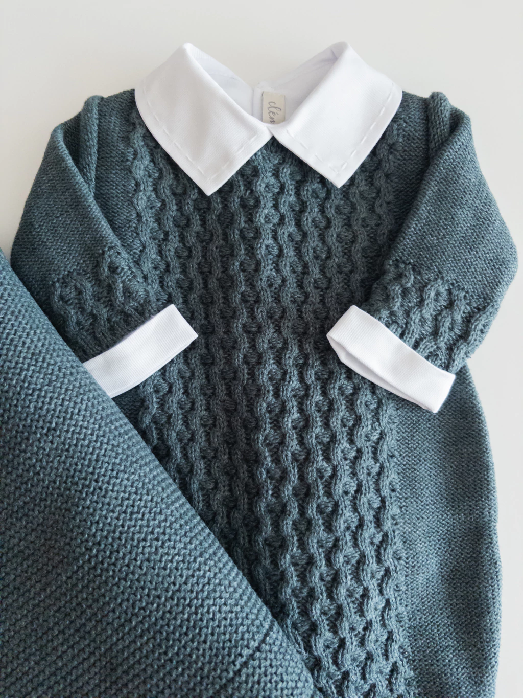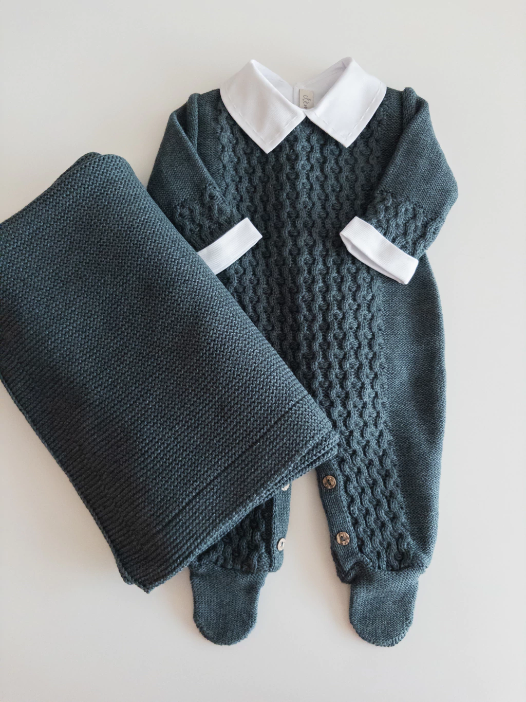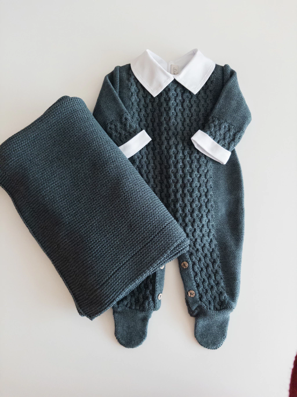 Composição macacão e manta: 50% algodão e 50% acrílico.