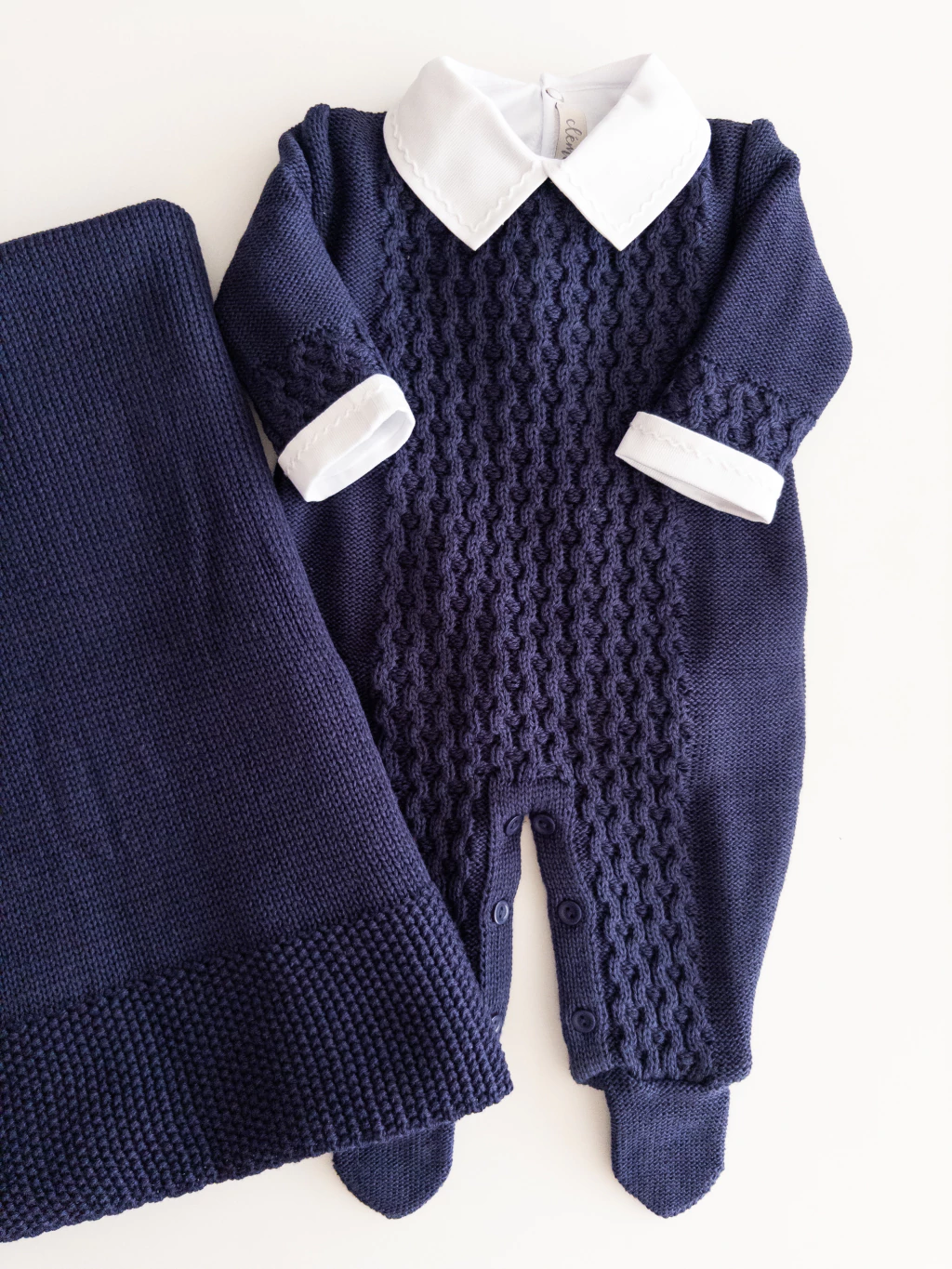Composição macacão e manta: 50% algodão e 50% acrílico.