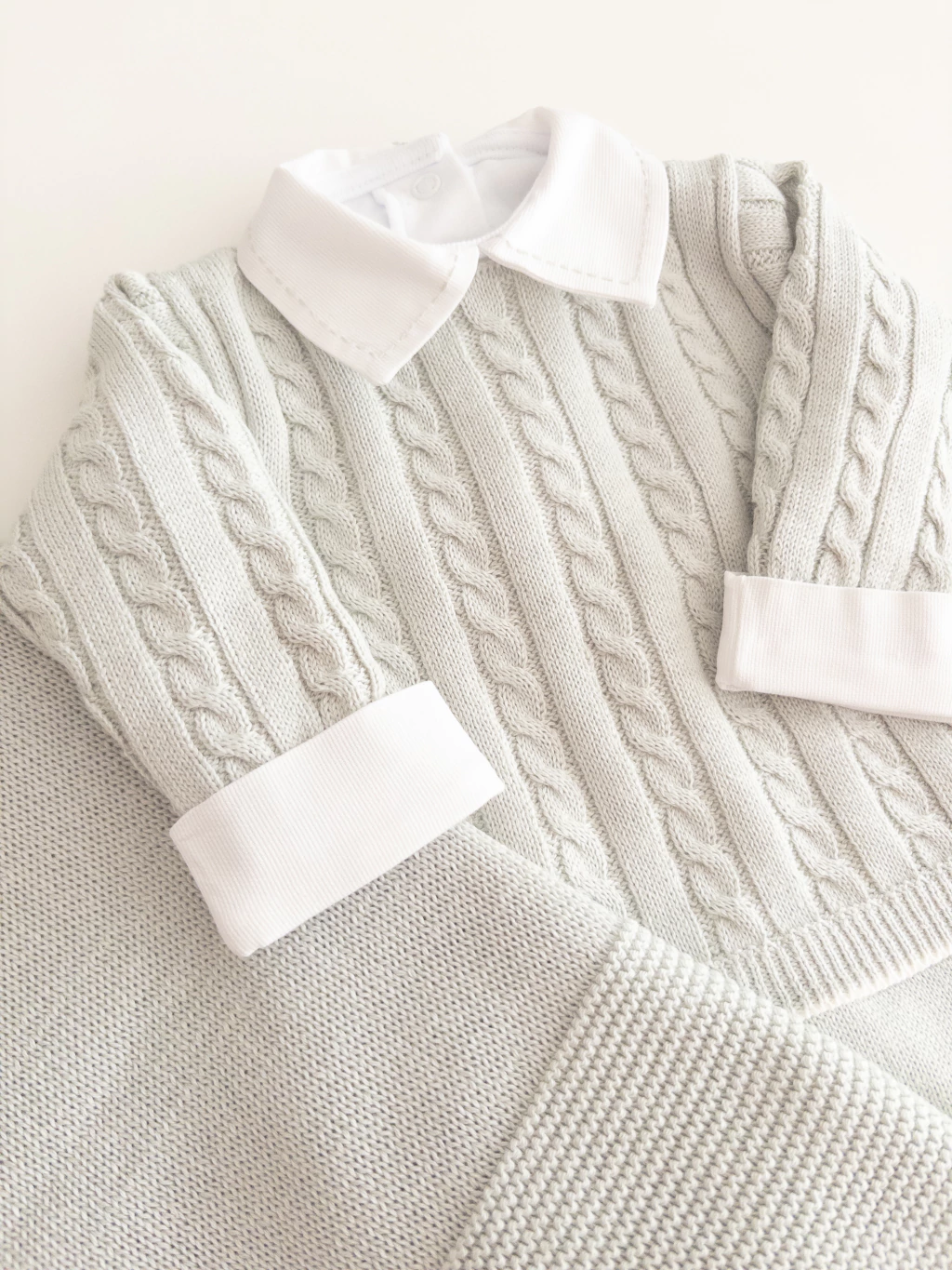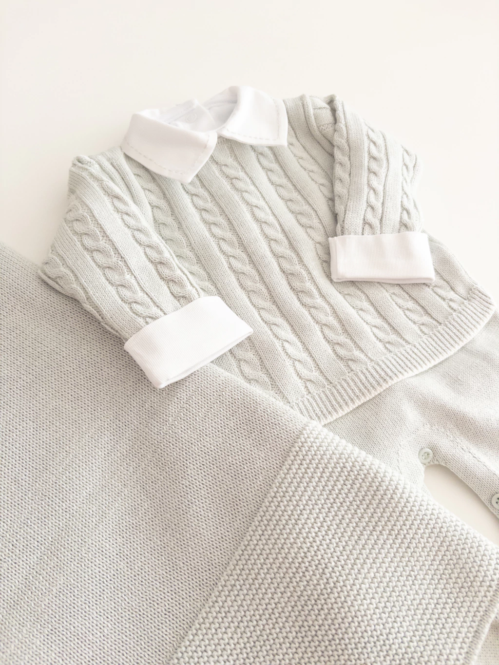 Um macacão que navega em estilo e encanto! Perfeito para os pequenos exploradores que embarcam nas aventuras mais fofas. Este trio macacão, body e manta em tricô leve e suave, é pura ternura e conforto. Deixe seu bebê pronto para navegar em um mar de fofura com muito charme e aconchego!
