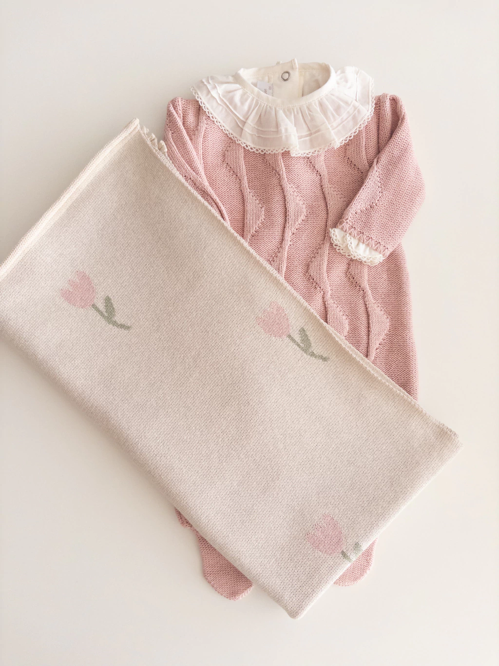 Composição macacão e manta; 50% algodão e 50% acrílico.