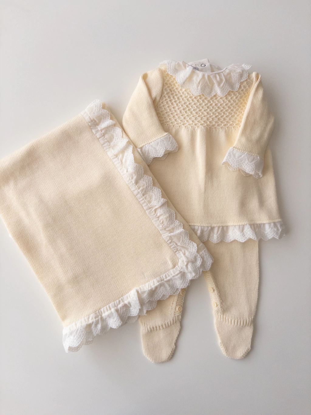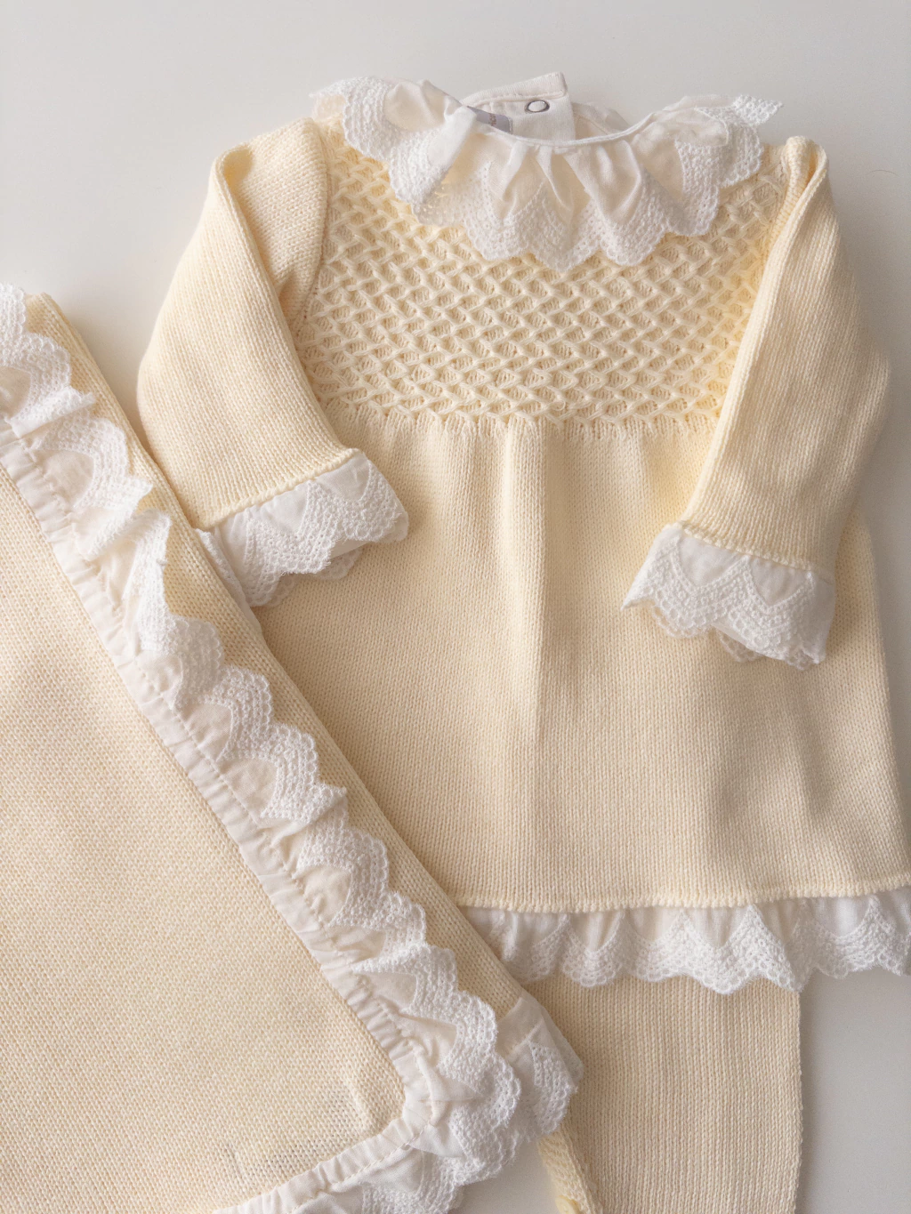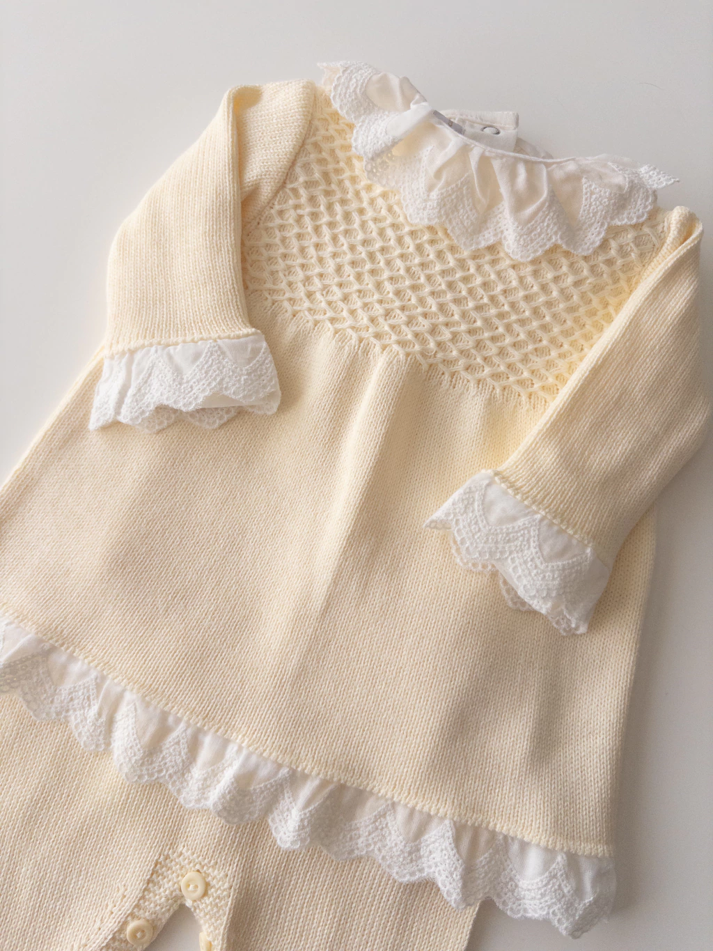 Encante a todos com a elegância e delicadeza do nosso conjunto Selene. Feita com ótimos materiais, é ideal para a delicada pele dos bebês, proporcionando uma sensação suave e agradável ao toque. Além disso, a durabilidade do tricô garante que a peça seja resistente ao uso frequente e às lavagens, mantendo-se sempre suave e mantendo sua forma original. Esse tipo de jardineira com casaquinho é perfeito tanto para momentos especiais quanto para o dia a dia, oferecendo um estilo clássico e atemporal que agrada tanto aos pais quanto aos bebês.