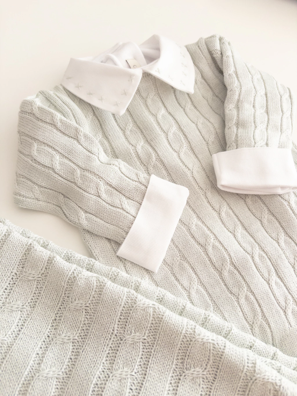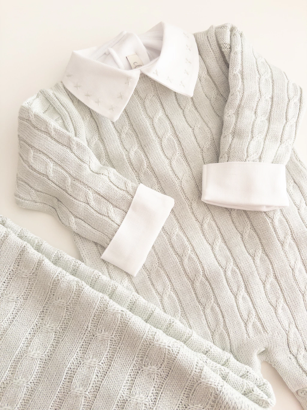 Um macacão que navega em estilo e encanto! Perfeito para os pequenos exploradores que buscam aventuras com muito estilo. Deixe seu bebê pronto para navegar em um mar de fofura com este conjunto encantador. Feito em tricô leve e suave.