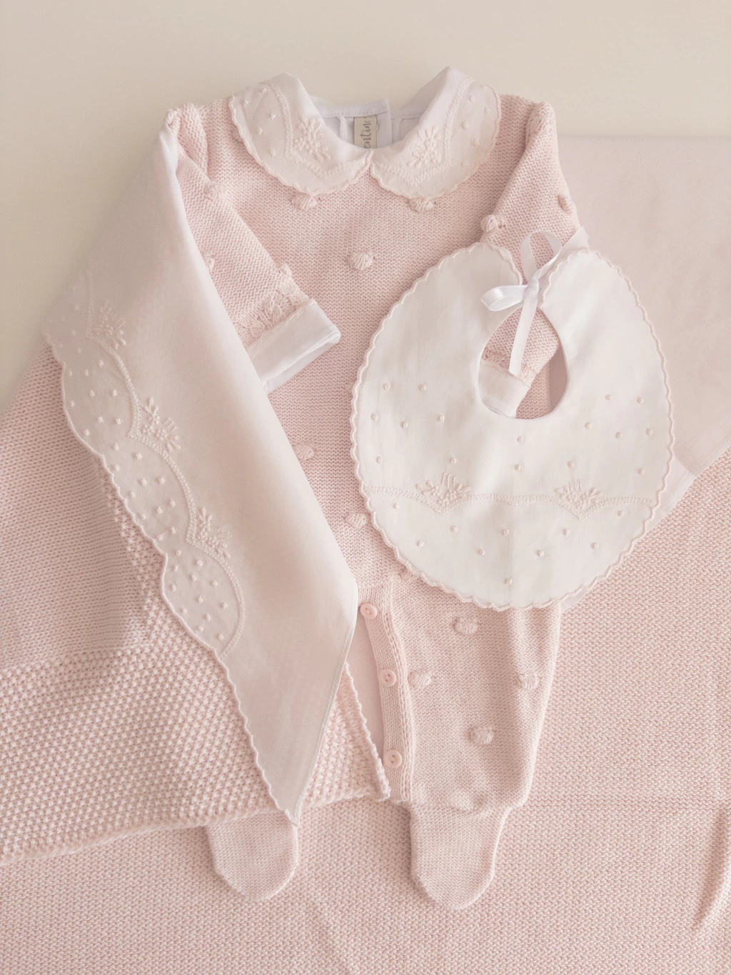 Macacão em tricô, delicadamente bordado com bolinhas para um toque de doçura. Feito com carinho e atenção aos detalhes, este macacão é uma mistura perfeita de conforto e estilo. Seu bebê ficará confortável e charmoso em qualquer ocasião, enquanto os suaves pontos de tricô abraçam sua pele com suavidade. Uma peça encantadora para adicionar à coleção de roupas do seu bebê, que certamente irá encantar a todos com sua beleza atemporal.